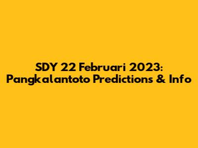 SDY 22 Februari 2023: Pangkalantoto Predictions & Info