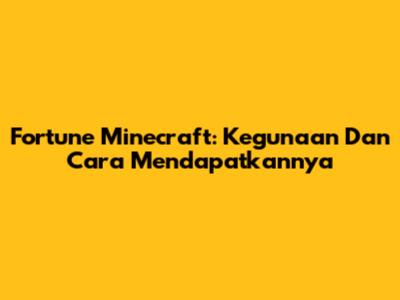 Fortune Minecraft: Kegunaan Dan Cara Mendapatkannya