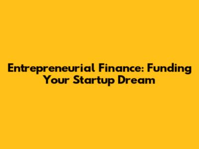 Entrepreneurial Finance: Funding Your Startup Dream