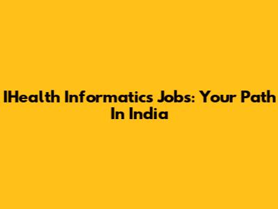 IHealth Informatics Jobs: Your Path In India