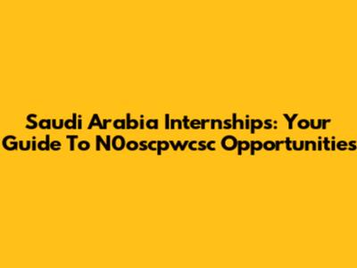 Saudi Arabia Internships: Your Guide To N0oscpwcsc Opportunities
