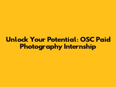 Unlock Your Potential: OSC Paid Photography Internship