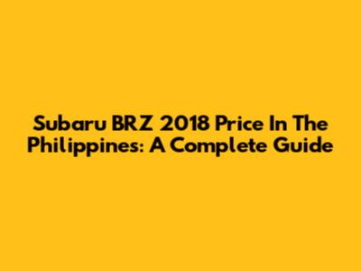 Subaru BRZ 2018 Price In The Philippines: A Complete Guide