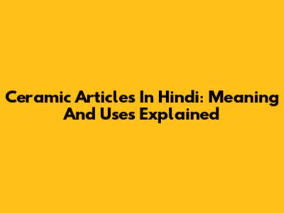Ceramic Articles In Hindi: Meaning And Uses Explained