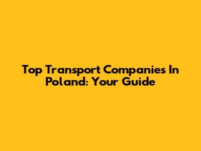 Top Transport Companies In Poland: Your Guide