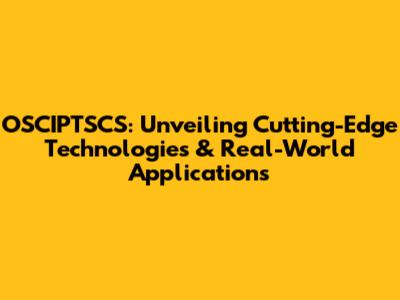 OSCIPTSCS: Unveiling Cutting-Edge Technologies & Real-World Applications
