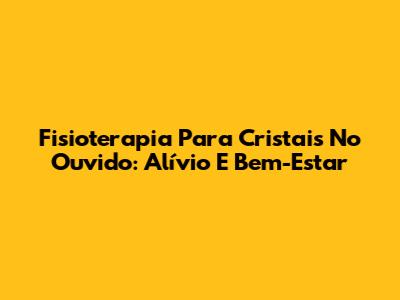 Fisioterapia Para Cristais No Ouvido: Alívio E Bem-Estar