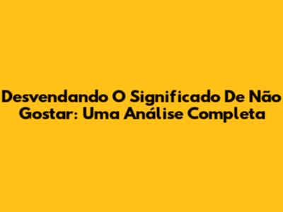 Desvendando O Significado De 'Não Gostar': Uma Análise Completa