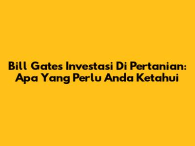Bill Gates Investasi Di Pertanian: Apa Yang Perlu Anda Ketahui