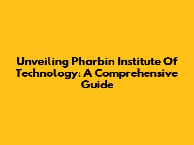 Unveiling Pharbin Institute Of Technology: A Comprehensive Guide