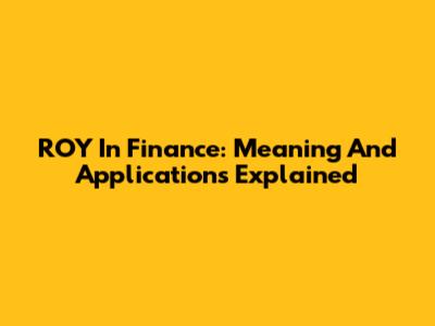 ROY In Finance: Meaning And Applications Explained
