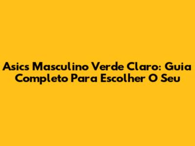 Asics Masculino Verde Claro: Guia Completo Para Escolher O Seu