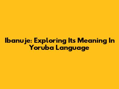 Ibanuje: Exploring Its Meaning In Yoruba Language
