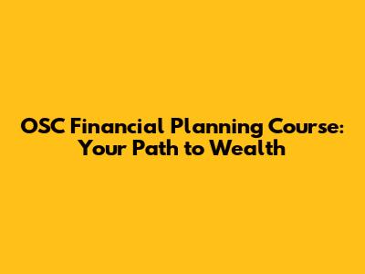 The OSC Financial Planning Course is designed to provide you with a comprehensive understanding of all aspects of financial planning. The curriculum is structured to take you from the basics of budgeting and debt management to more advanced topics such as investment strategies and retirement planning. Here's a glimpse of what you can expect to learn: