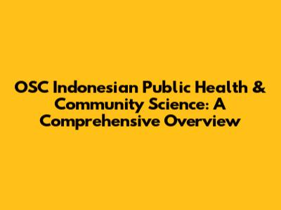 What Exactly is OSC Indonesian Public Health & Community Science?