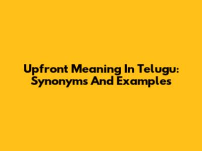 Upfront Meaning In Telugu: Synonyms And Examples