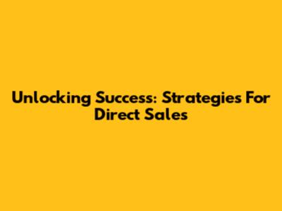 Unlocking Success: Strategies For Direct Sales