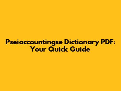 Pseiaccountingse Dictionary PDF: Your Quick Guide