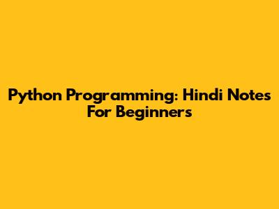 Python Programming: Hindi Notes For Beginners
