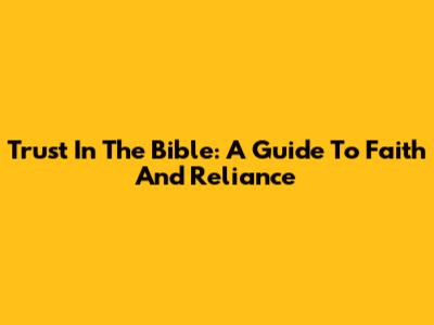 Trust In The Bible: A Guide To Faith And Reliance