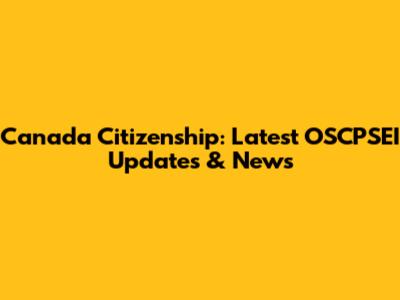 Canada Citizenship: Latest OSCPSEI Updates & News