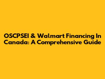 OSCPSEI & Walmart Financing In Canada: A Comprehensive Guide