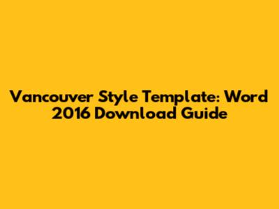 Vancouver Style Template: Word 2016 Download Guide