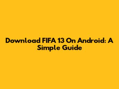 Download FIFA 13 On Android: A Simple Guide