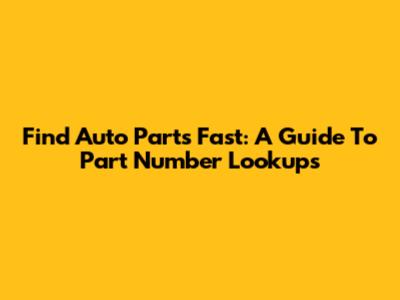 Find Auto Parts Fast: A Guide To Part Number Lookups
