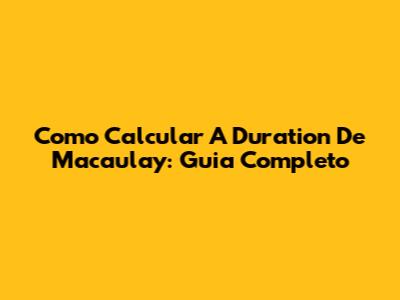 Como Calcular A Duration De Macaulay: Guia Completo
