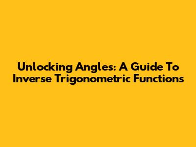 Unlocking Angles: A Guide To Inverse Trigonometric Functions