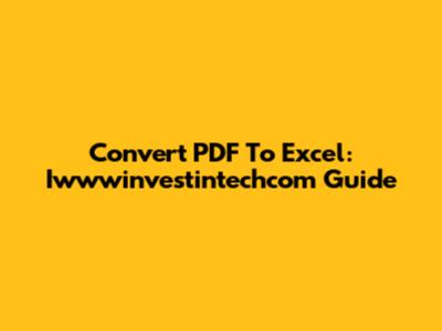 Convert PDF To Excel: Iwwwinvestintechcom Guide