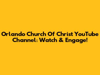Orlando Church Of Christ YouTube Channel: Watch & Engage!
