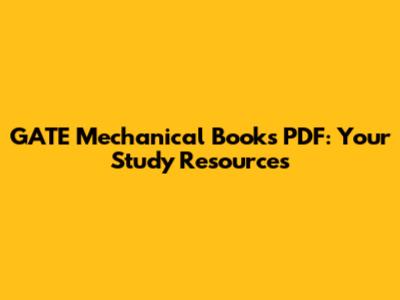 GATE Mechanical Books PDF: Your Study Resources