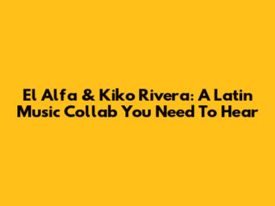 El Alfa & Kiko Rivera: A Latin Music Collab You Need To Hear