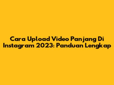 Cara Upload Video Panjang Di Instagram 2023: Panduan Lengkap