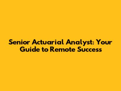 Hey guys! So, you're looking into becoming a senior actuarial analyst and dreaming of ditching the office for a comfy remote setup? Awesome! The world of actuarial science is evolving, and with it, the opportunities to work from anywhere. This guide is your friendly roadmap to navigating the remote senior actuarial analyst landscape. We'll cover everything from what the job entails, the skills you'll need, and, most importantly, how to land that dream remote gig. Let's dive in, shall we?