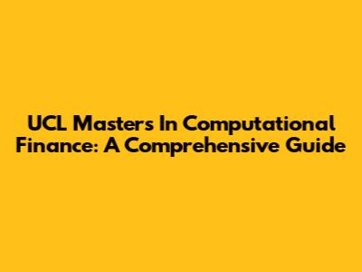 UCL Master's In Computational Finance: A Comprehensive Guide