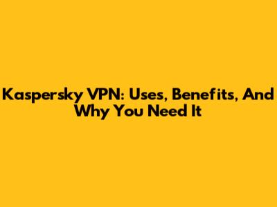 Kaspersky VPN: Uses, Benefits, And Why You Need It