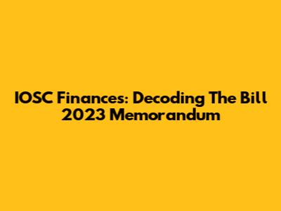 IOSC Finances: Decoding The Bill 2023 Memorandum