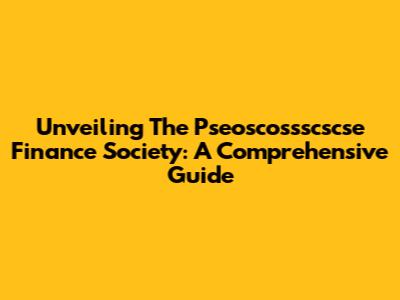 Unveiling The Pseoscossscscse Finance Society: A Comprehensive Guide