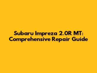 Subaru Impreza 2.0R MT: Comprehensive Repair Guide