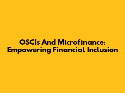 OSCIs And Microfinance: Empowering Financial Inclusion