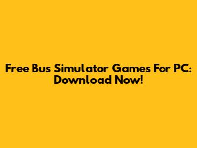 Free Bus Simulator Games For PC: Download Now!