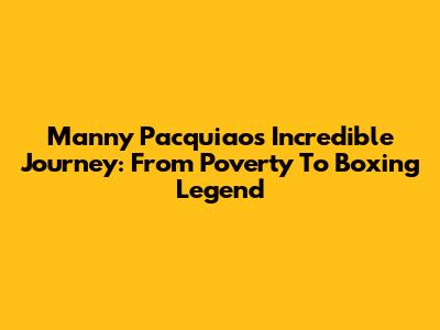 Manny Pacquiao's Incredible Journey: From Poverty To Boxing Legend