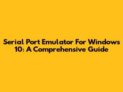 Serial Port Emulator For Windows 10: A Comprehensive Guide