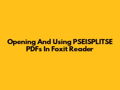 Opening And Using PSEISPLITSE PDFs In Foxit Reader