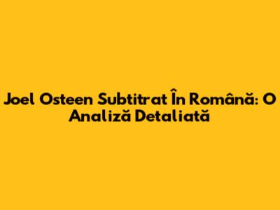 Joel Osteen Subtitrat În Română: O Analiză Detaliată