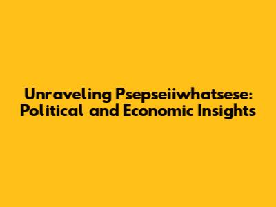 Hey guys! Ever stumble upon a term that sounds like it's from a secret society? Well, today we're diving deep into "psepseiiwhatsese," a term that's, for the sake of this article, a stand-in for a complex interplay of political and economic forces. Think of it as a fun, abstract way to explore the often-tangled world of how money and power really work. We're not talking about some actual, obscure organization, but rather using this as a lens to analyze real-world scenarios. So, grab your coffee, settle in, and let's unravel this thing together! This article is all about making sense of the chaos, breaking down those complicated concepts into bite-sized pieces, and maybe even having a few laughs along the way. We'll be looking at how policies are made, how markets behave, and how all of this impacts us, the everyday people. It's gonna be a wild ride, so buckle up!