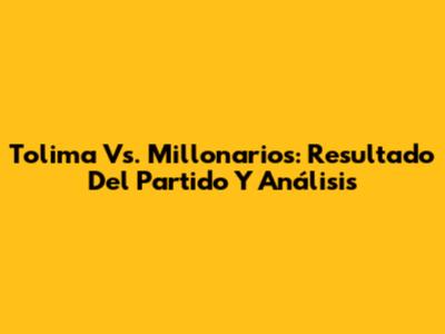 Tolima Vs. Millonarios: Resultado Del Partido Y Análisis